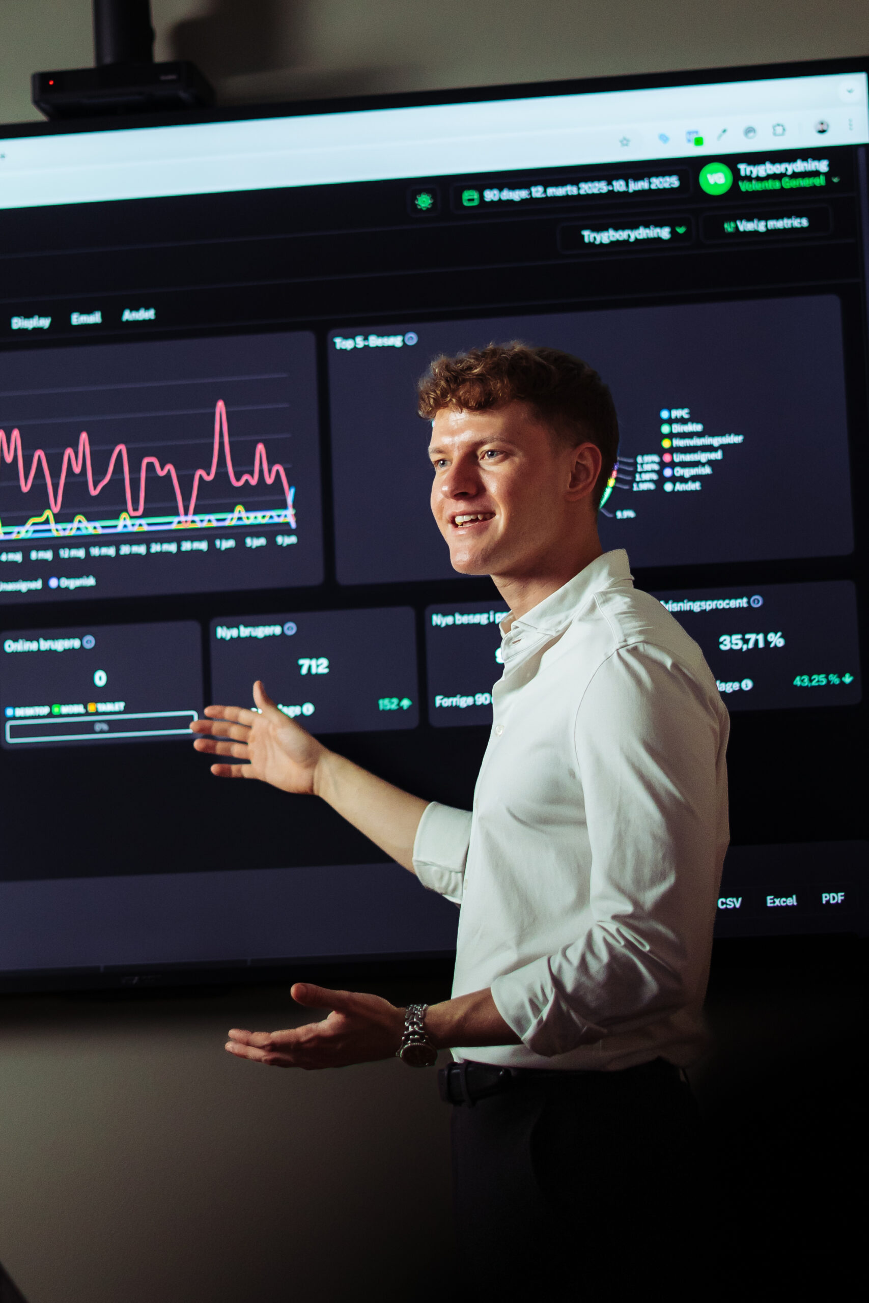Effekten måles på tværs af hele kunderejsen og kobles til pipeline og salgsdata. Vi ser på, hvordan indsatserne bidrager til kvalificerede henvendelser, salgsdialoger og forretning, ikke kun på marketing-aktiviteter isoleret set.